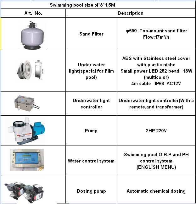 波蘭客戶泳池設(shè)備采購(gòu)清單