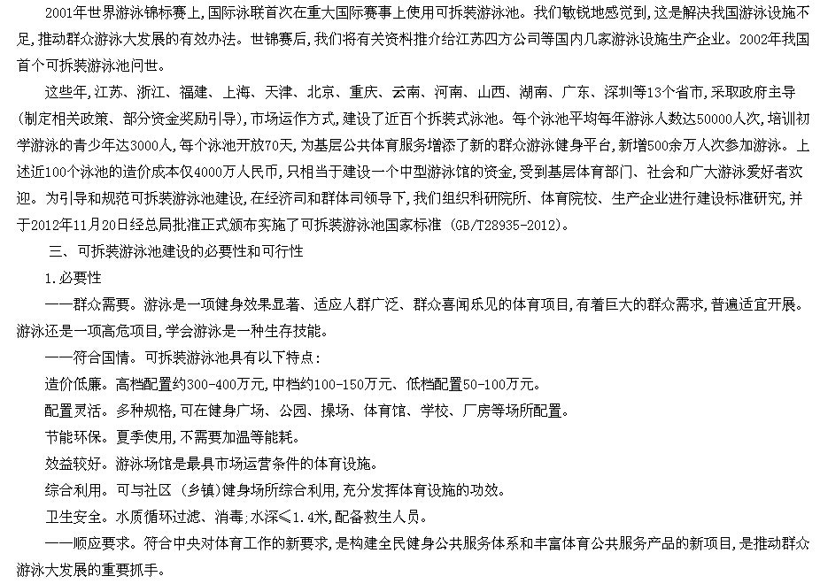 游泳中心:探索試點(diǎn)建設(shè)可拆裝游泳池