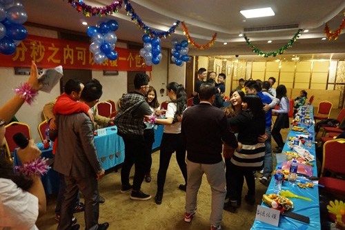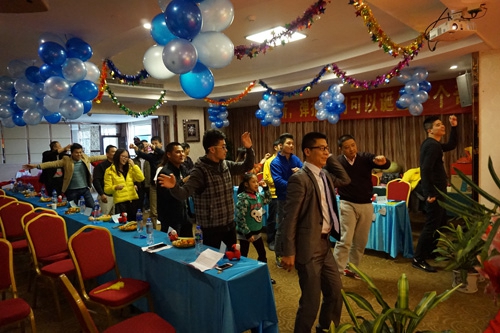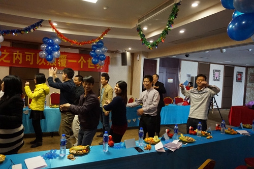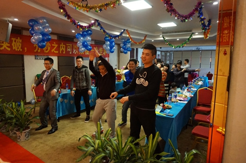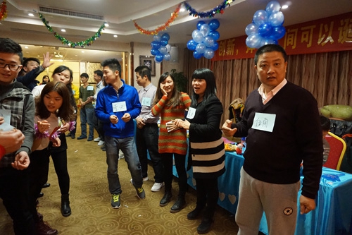 為了先調(diào)動大家的熱情,全體在動感音樂的帶領(lǐng)下,一起跳抓錢舞,用大家最大的熱情,啟動我們的抓錢模式,拉開我們2015年新年的序幕。不過,抓錢舞在大家的演繹之下,似乎變成了群魔亂舞!