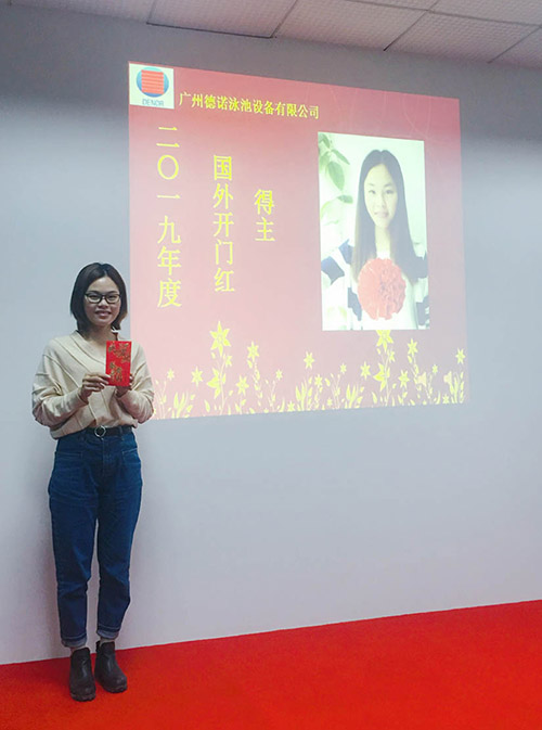 都說努力了不一定有收獲,但是我們可以確信的是,不努力就一定不會有收獲,2019年國內獲得開門紅第一個訂單的得主就是我們的泳池事業(yè)部的肖凡凡,國外獲得開門紅第一單的就是我們外貿部的Nancy鄧