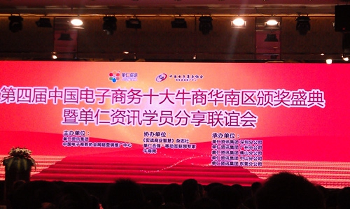 2013年3月31日,第四屆中國(guó)電子商務(wù)十大牛商華南區(qū)頒獎(jiǎng)盛典暨單仁資訊學(xué)員分享聯(lián)誼會(huì)在美麗的中山喜來(lái)登酒店拉開(kāi)帷幕,本次頒獎(jiǎng)盛典由中國(guó)電子商務(wù)協(xié)會(huì)、廣東省電子商務(wù)協(xié)會(huì)和單仁資訊集團(tuán)聯(lián)合舉辦,單仁資訊集團(tuán)總裁劉宏、副總裁陳飛、副總裁張高峰及南方都市報(bào)、廣州新快報(bào)、佛山日?qǐng)?bào)中山日?qǐng)?bào)、東莞日?qǐng)?bào)等媒體和各地電商行業(yè)協(xié)會(huì)領(lǐng)導(dǎo)出席,廣東地區(qū)400多位企業(yè)家慕名而來(lái)。