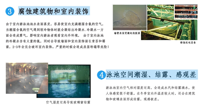 如此美輪美奐,風(fēng)情萬種的室內(nèi)泳池,如果不安裝除濕產(chǎn)品的話,會帶來一系列麻煩: