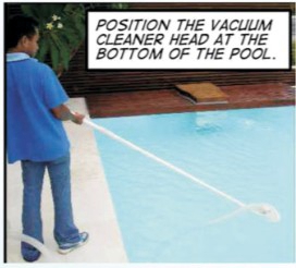 2、把真空吸池頭放到泳池的底部
