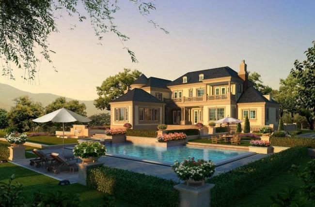 庭院泳池同別墅建筑間極為美妙的關(guān)系,可能是最直觀也是最具美感的。通過建筑與泳池間的精巧布局,讓湛藍(lán)的泳池猶如一塊巨大的鏡面,倒映出建筑恢宏優(yōu)美的身影。無論是隨意優(yōu)美的英倫風(fēng)格、熱情奔放的地中海風(fēng)格,抑或講究對(duì)稱格局的法式風(fēng)格,于泳池倒影里俱是一幅幅精彩絕倫的畫作。