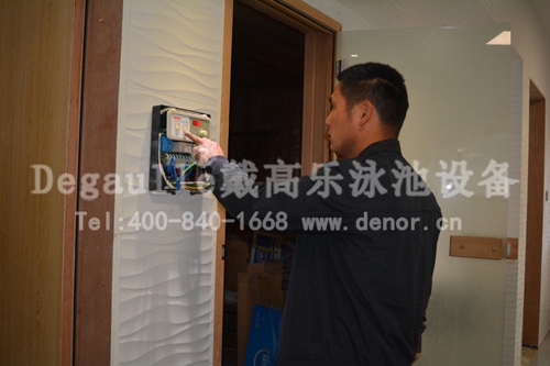 水療池泳池工程容積為4m3,泳池循環(huán)過濾設(shè)備使用的是戴高樂DS400 8m3/h玻璃纖維砂缸(側(cè)出式),1.5HP/220V循環(huán)水泵2臺(tái),恒溫泳池設(shè)備使用的是戴高樂5HP/380V泳池恒溫?zé)岜谩?/p>