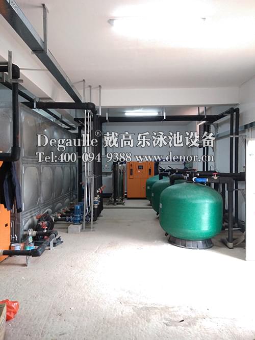 女賓池水深0.7m;總水量約20m³,水處理過(guò)濾系統(tǒng)使用的是2臺(tái)戴高樂(lè)過(guò)濾纖維沙缸,2臺(tái)循環(huán)增壓泵;消毒系統(tǒng)使用的是2臺(tái)紫外線(xiàn)消毒器;恒溫泳池系統(tǒng)使用的是2臺(tái)戴高樂(lè)泳池?zé)岜?;人工溫泉產(chǎn)生機(jī)1套。