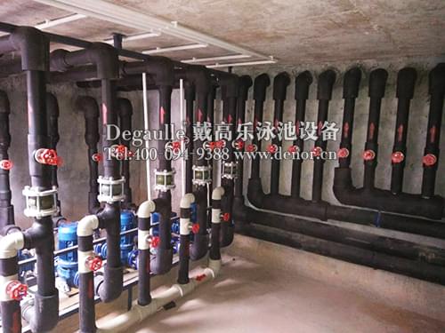 A5#池容積為77.8㎡;總水量約54.5m³;水處理過(guò)濾系統(tǒng)使用的是1臺(tái)戴高樂(lè)過(guò)濾纖維沙缸;2臺(tái)循環(huán)增壓泵;消毒系統(tǒng)使用的是2臺(tái)紫外線(xiàn)消毒器;恒溫泳池系統(tǒng)使用的是2臺(tái)戴高樂(lè)泳池?zé)岜?;人工溫泉產(chǎn)生機(jī)1套。