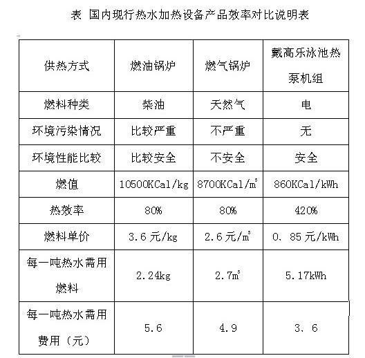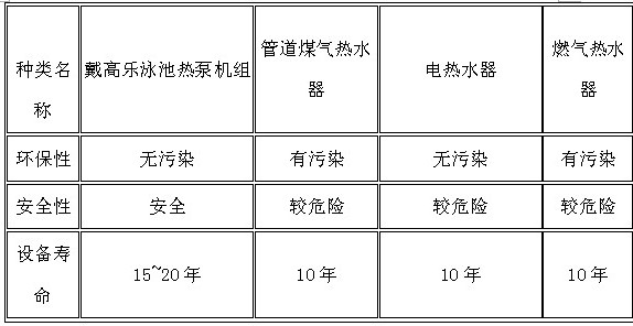 泳池從15℃升溫至28℃時各種加熱設(shè)備所耗電量如下表: